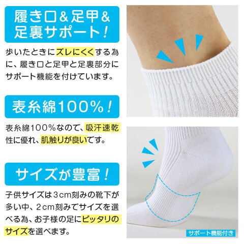 スクールソックス スニーカー丈の紹介3本糸の補強編みで丈夫! サポート機能付きスクールソックスです。