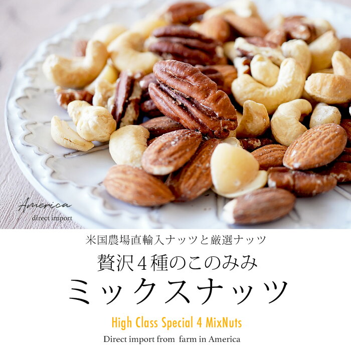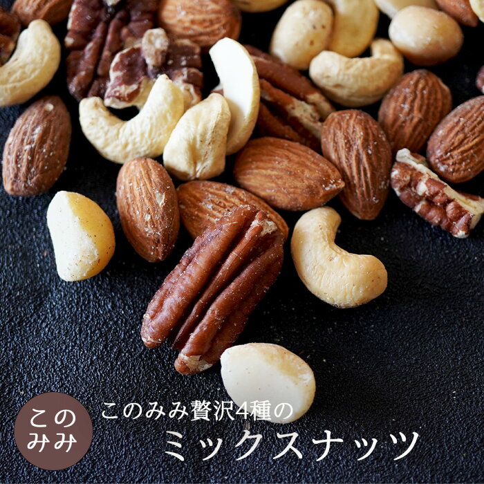 【50g増量中!!】送料無料 無塩 小袋 オイル不使用 ナッツ ピーカンナッツ アーモンド マカダミアナッツ カシューナッツ 健康 美容 おつまみ 小分け 日本製 お中元 おやつ 素焼き・無添加贅沢4種のこのみみミックスナッツ 450g(50g増量中)