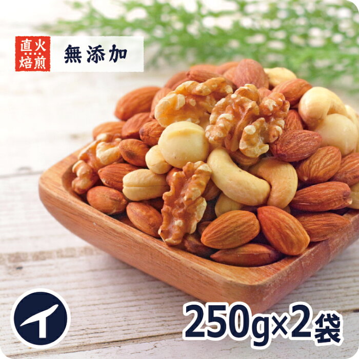 【素焼きミックスナッツ 500g】無塩 小分け 工場直送 直火焙煎 素煎り ロースト 無添加 食塩 不使用 ナッツ 木の実 4種類【アーモンド・カシューナッツ・くるみ・マカダミア・マカデミア】チャック付き 高級 健康《ポスト投函・送料無料》
